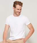 100% organic cotton.* Ribbed collar. Tubular body. Twin needle stitching. Tear out label.