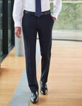 64% Polyester (Recycled), 34% Wool, 2% LYCRA® Elastane. Slim fit, flat front trouser, 2 side pockets, 1 rear pocket Half hem width at waist size 34" = 19cm