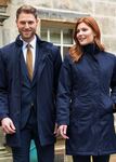 100% Waterproof Polyester. 5 button fly front with zip, showerproof, centre vent, 2 outer welt pockets, quilted lining with 2 internal pockets, collar incorporating concealed hood, cuff with tab detail, front princess seams. centre back length @ 12R = 93cm.
